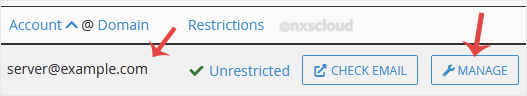 4. If your email address is server@example.com, you should see a Manage option on the right side of your email address. Click on Manage.