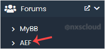 4. On the left side, locate the Forums category. Click on it and then on the AEF link that appears.