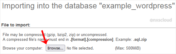 Under File to Import, click on Browse and select SQL file from your computer.