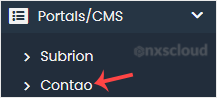 4. On the left side, locate the Portal/CMS category. Click on it and then on the Contao link that appears.