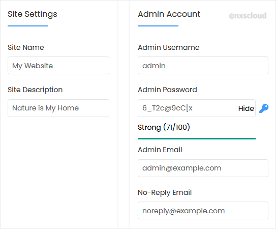 • Admin Email: Your e-mail address.