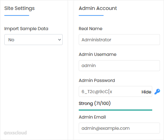 • Admin Email: Your e-mail address.